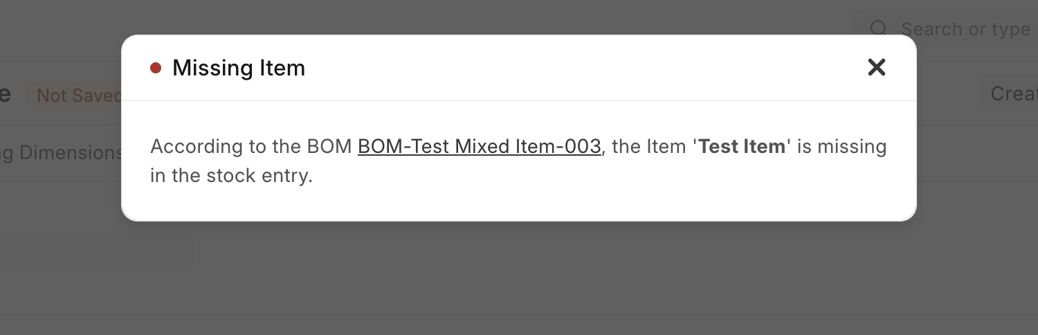If user has removed the item in the "Material Transfer for Manufacture" or "Manufacture" stock entry, then system will throw the "Missing Item" error