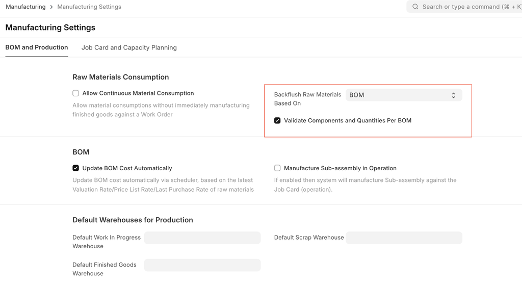 This Warehouse will be auto-updated in the 'Work In Progress' Warehouse field of Work Orders.