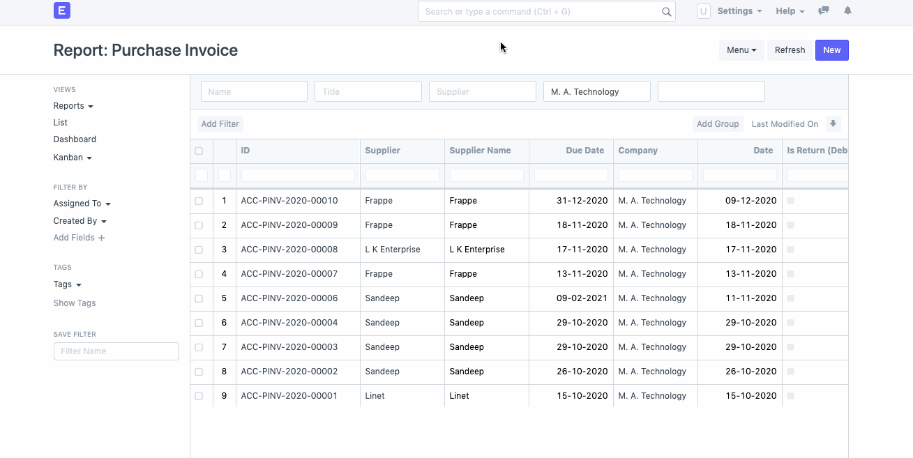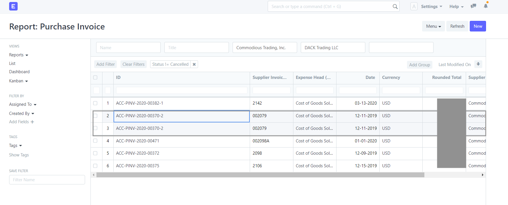 I have made a report on Purchase Invoice. Why is the invoice being shown twice in the report?